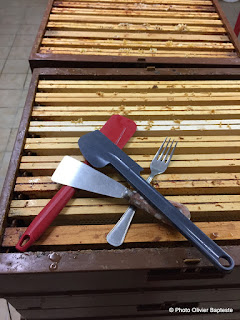 plus vielles. Puis je tape le cadre dans la ruche vide pour faire tomber toutes